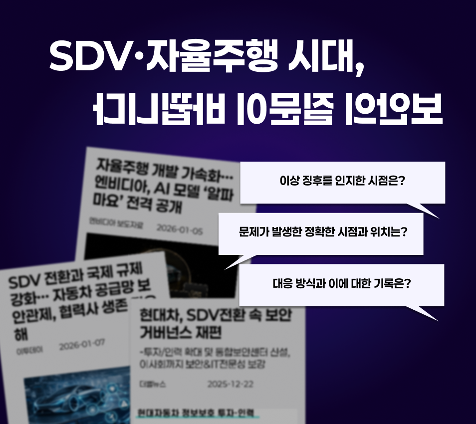 SDV와 자율주행, 차량 연결성 확대로 자동차 산업 전반의 보안 환경은 빠르게 변화하고 있습니다.