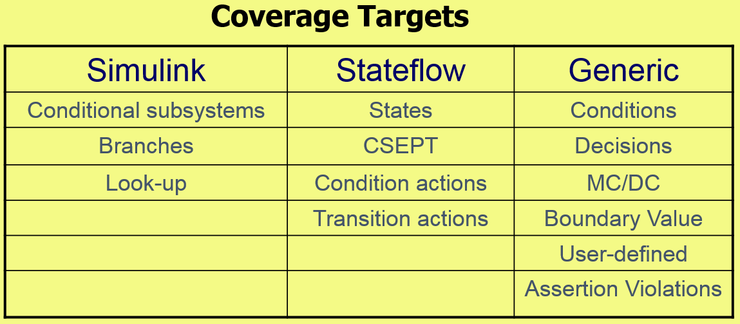 [그림 2] Reactis에서 지원되는 커버리지 종류